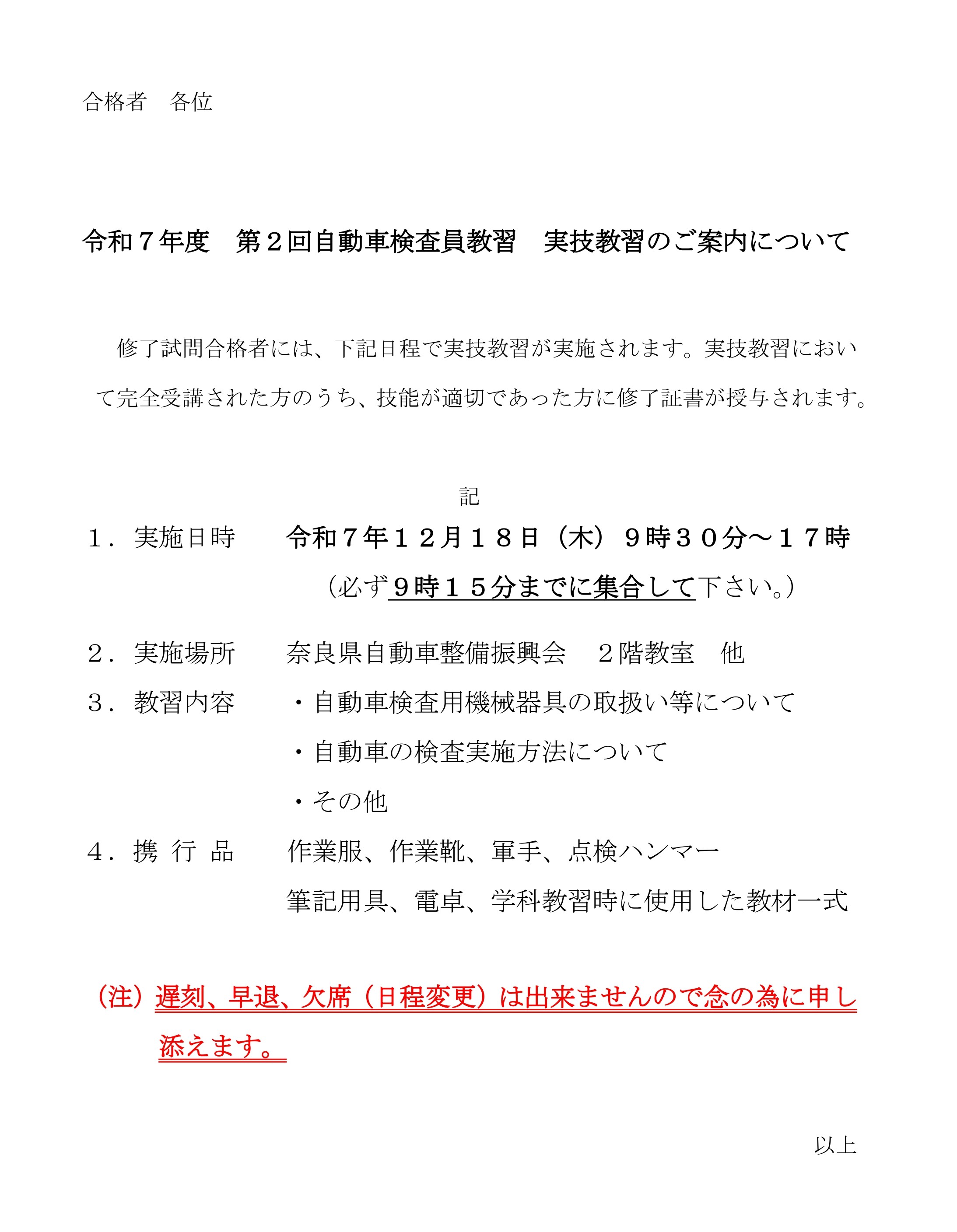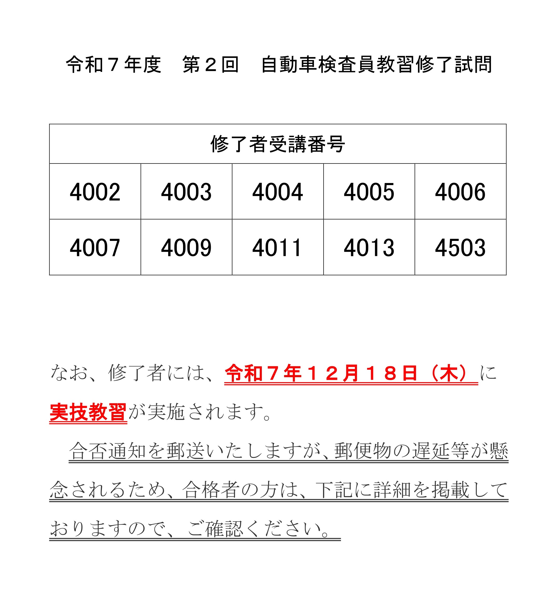 トップページ » 新着情報 » 令和7年度 第2回 自動車検査員教習合格者発表